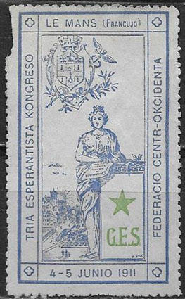 Непочтовая марка. Третий эсперантистский конгресс. Федерация западного центра. 1911 год