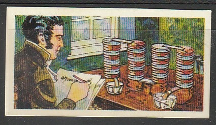 Непочтовая марка Великобритании (Brooke Bond Tea Cards) Первая электрическая батарея 1799 года.
