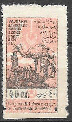 Непочтовая марка взносов в союз работ Землес, 40 коп., Ташкент 1925 г