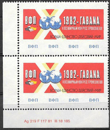 Непочтовая марка X Всемирный Конгресс профсоюзов, сцепка марок, 1982 г. Гавана