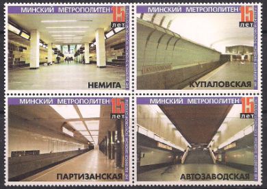 Непочтовые марки "Минский метрополитен - 15 лет". 4 марки (небольшой излом)