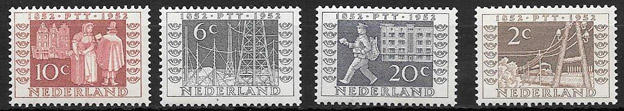 Нидерланды 1952 год. Выставка почтовых марок в Утрехте. ЛЭП, почтальоны, 4 марки