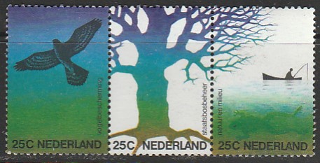 Нидерланды 1974 год. Природа и окружающая среда, сцепка из 3 марок
