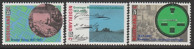 Нидерланды 1987 год. 100 лет аукциону "Фрукты и цветы". 150 лет Аграрному обществу, 3 марки