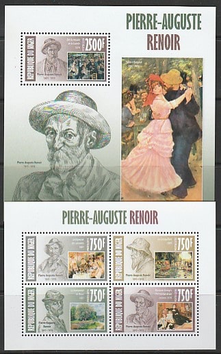 Нигер 2013 год. Французский художник Пьер Огюст Ренуар, малый лист + блок