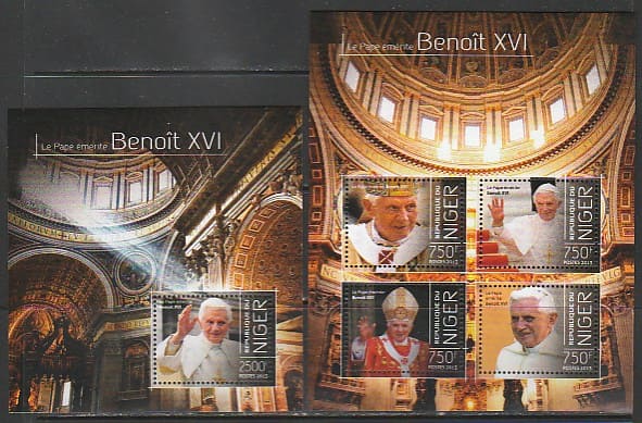 Нигер 2013 год. Папа Римский Бенедикт XVI, малый лист + блок.