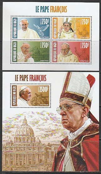Нигер 2013 год. Папа Римский Франциск, малый лист + блок.