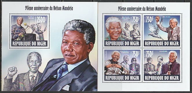 Нигер 2013 год. Южноафриканский политик Нельсон Мандела, малый лист + блок.