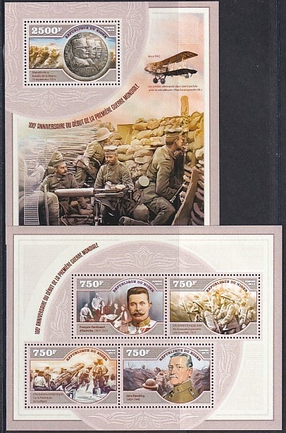 Нигер 2014 год. 100 лет с начала Первой Мировой войны, малый лист + блок