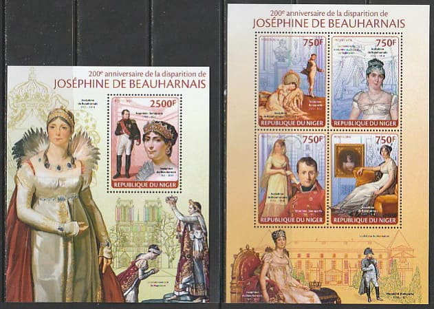 Нигер 2014 год. 200 лет со дня смерти императрицы Франции Жозефины де Богарне, малый лист + блок.