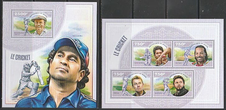 Нигер 2014 год. Спорт. Крикет. Спортсмены, малый лист + блок.