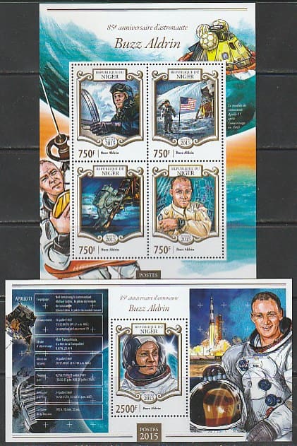 Нигер 2015 год. 85 лет со дня рождения американского астронавта Базза Олдрина, малый лист + блок.