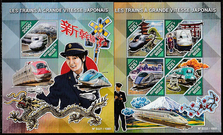 Нигер 2015 год. Японские высокоскоростные поезда, малый лист + блок.