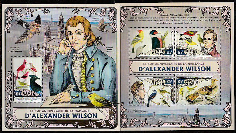 Нигер 2016 год. Орнитолог Александр Вильсон, малый лист + блок.