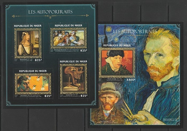 Нигер 2016 год. Живопись. Автопортреты, малый лист + блок