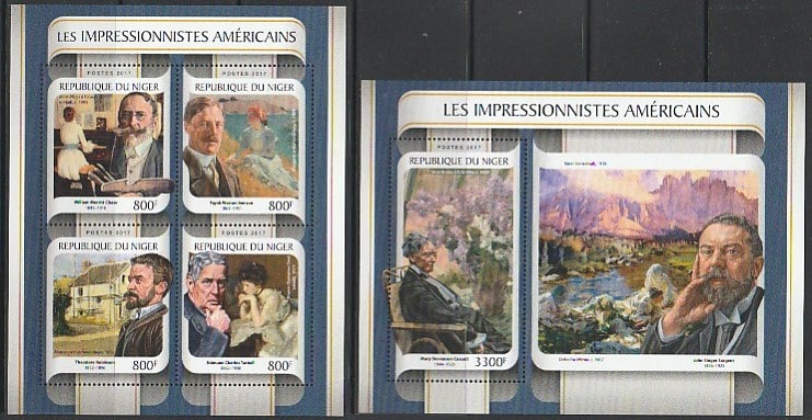 Нигер 2017 год. Американские импрессионисты, малый лист + блок.