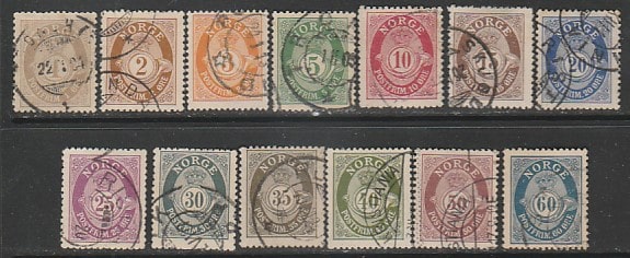 Норвегия 1909/1920 год. Стандарт. Почтовый рожок, 13 марок из серии (гашёные)