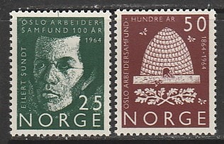 Норвегия 1964 год. 100 лет Рабочему клубу Осло, 2 марки