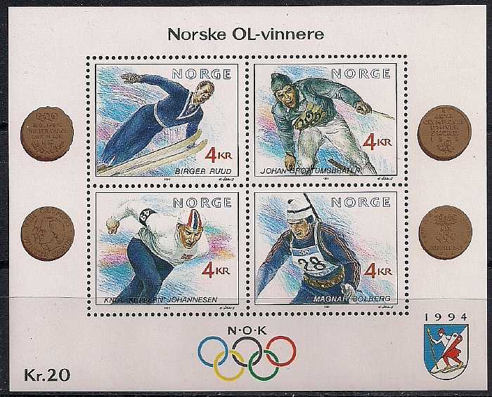 Норвегия 1991 год. Норвежские олимпийские чемпионы, участники зимних Олимпийских игр разных лет. Блок