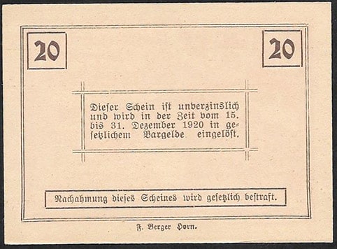 Нотгельд 20 пфеннингов. Германия 1920 год