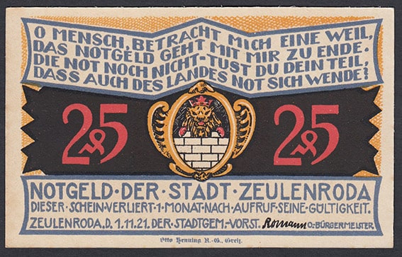 Нотгельд 25 пфеннингов. Германия 1921 год