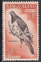 Новая Зеландия 1960 год. Фруктовый голубь (ном. 1+3). 1 марка из серии (наклейка)