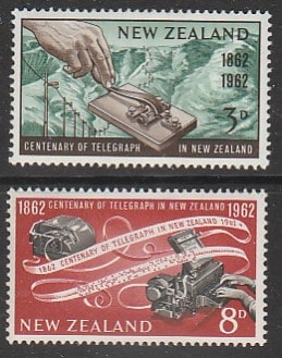 Новая Зеландия 1962 год. 100 лет телеграфу, 2 марки.
