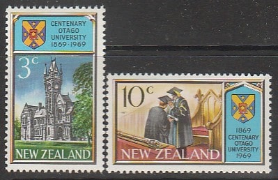 Новая Зеландия 1969 год. 100 лет со дня основания университета Отаго, 2 марки.
