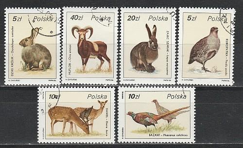 Охотничья Фауна, Польша 1986 год, 6 гашеных марок