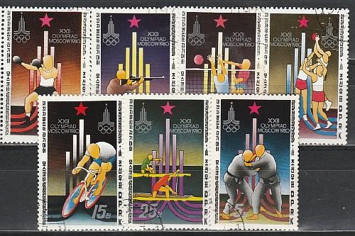 Олимпиада в Москве, КНДР 1980 год, 7 гашёных марок