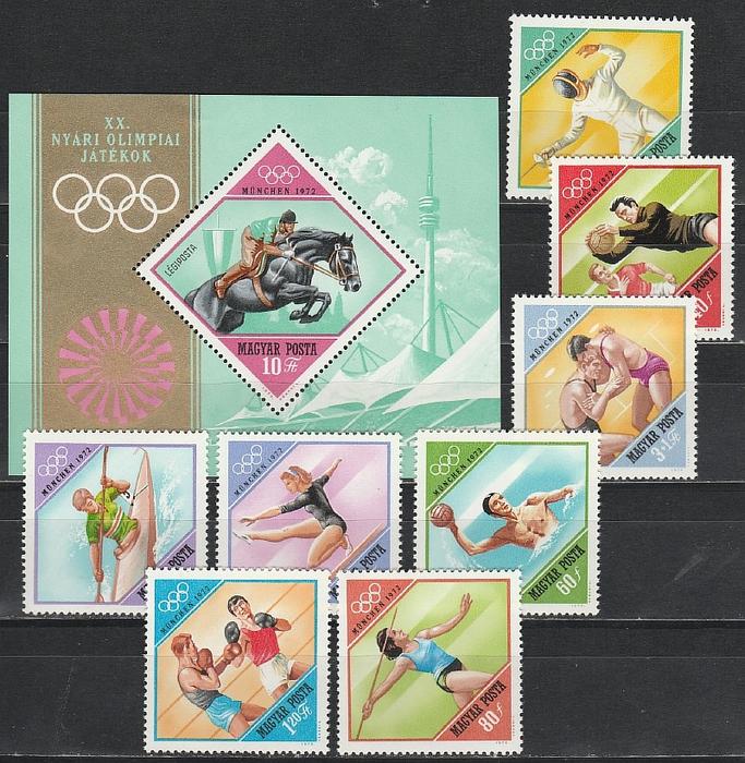 Олимпиада в Мюнхене, Венгрия 1972 г, 8 марок и блок