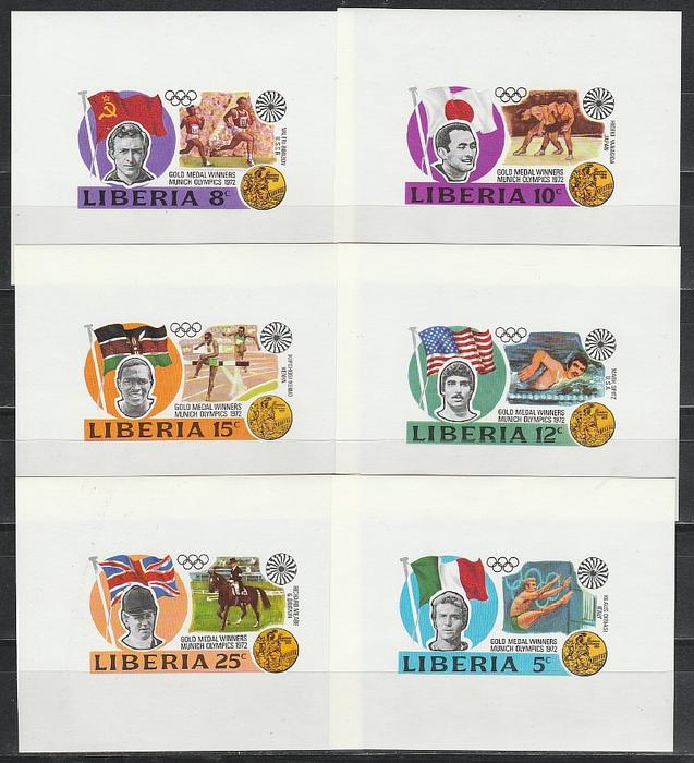 Олимпиада в Мюнхене, Золотые Медалисты, Либерия 1973, 6 люкс блоков без зубцов