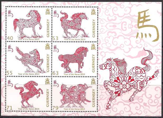Остров Гернси (Великобритания) 2014 год. Год Лошади (098.1455). Блок