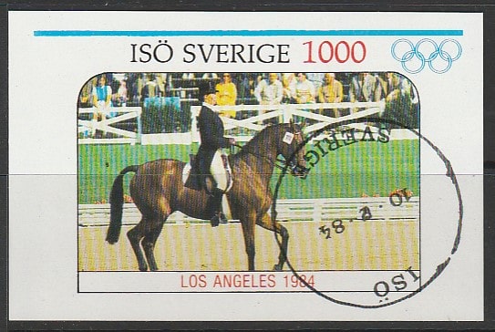 Остров Исо (Швеция) 1984 год. Олимпиада в Лос-Анджелесе. Конный спорт, гашёный блок (непочтовый)