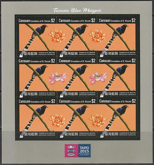 Остров Кануан (Сент-Винсент и Гренадины) 2015 год. Международная филвыставка "Тайпэй 2015". Птицы, малый лист