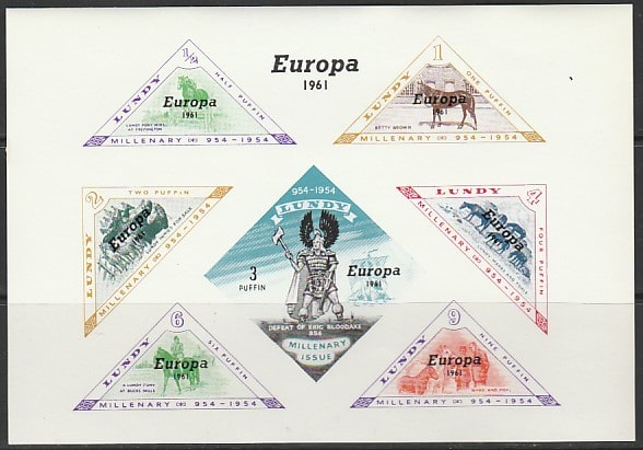 Остров Ланди (Великобритания) 1961 год. 1000 лет гибели короля Эйрика I "Кровавая секира", НДП, б/зубц. блок.