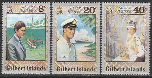 Острова Гилберта (Кирибати) 1977 год. 25 лет Правлению королевы Елизаветы II, 3 марки