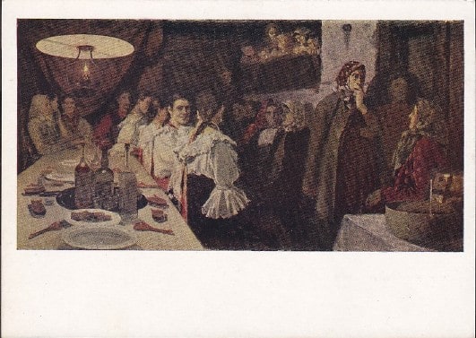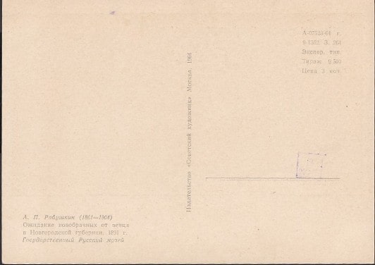 Открытка 1964 год. худ. Рябушкин Ожидание новобрачных от венца. Свадебный стол. в Новгородской губернии. 1891 год