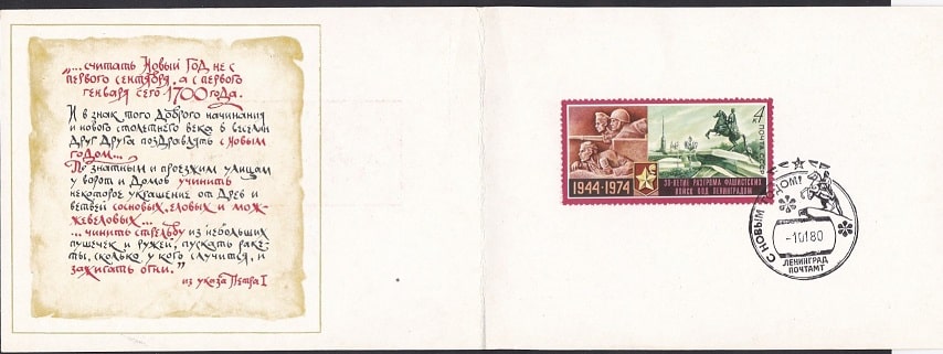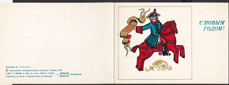 Открытка 1976 года, С Новым годом! худ Губанов, СГ 1980 года, с маркой.