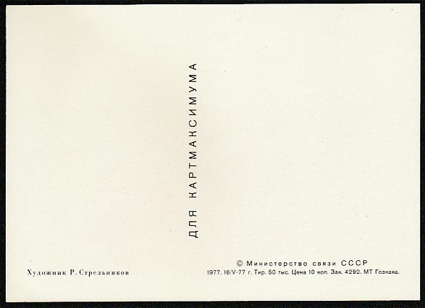 Открытка для КМ. XX лет Космической эры. Межпланетные трассы, 16.05.1977 год.
