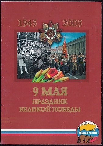 Открытка двойная 9 мая Праздник Великой Победы! Выпуск 2005 год, программа мероприятий (Единая Россия