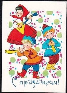 Открытка С праздником! (худ. И. Искринская), 10х7 см