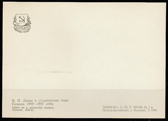 Открытка. Фотопортрет В.И. Ленина, Самара, 1890-1891 годы; "ИЗОГИЗ", 1960 год.