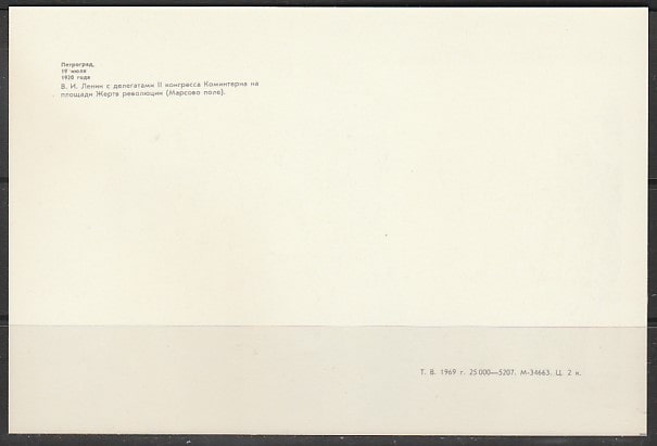 Открытка. Петроград, 19.07.1920 года. В.И. Ленин с делегатами II конгресса Коминтерна на Марсовом поле, Лениздат, 1969 год.