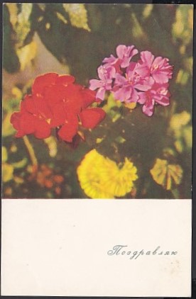 Открытка Поздравляю "Цветы". фото Т. Боровской. Москва. 1966 г.