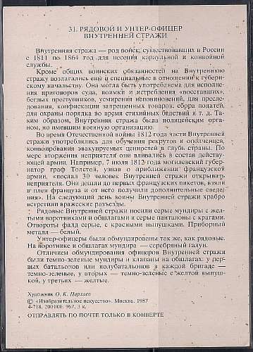 Открытка. Рядовой и унтер-офицер внутренней стражи, 1987 год, Москва