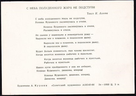 Открытка С неба полуденного жара не подступи (худ. А. Куркин). Выпуск 1966 год