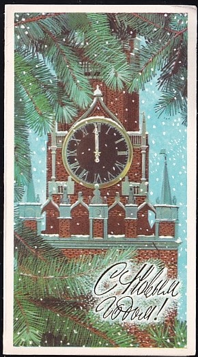 Открытка С Новым годом! (Часы на Спасской башне). Выпуск 1976 год