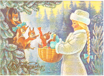 Открытка С Новым Годом! Снегурочка и белочки2. 1988 год. худ. Зарубин. Подписанная.