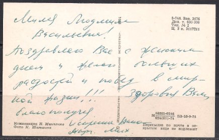 Открытка С праздником 8 марта! Выпуск 1974 год, подписана